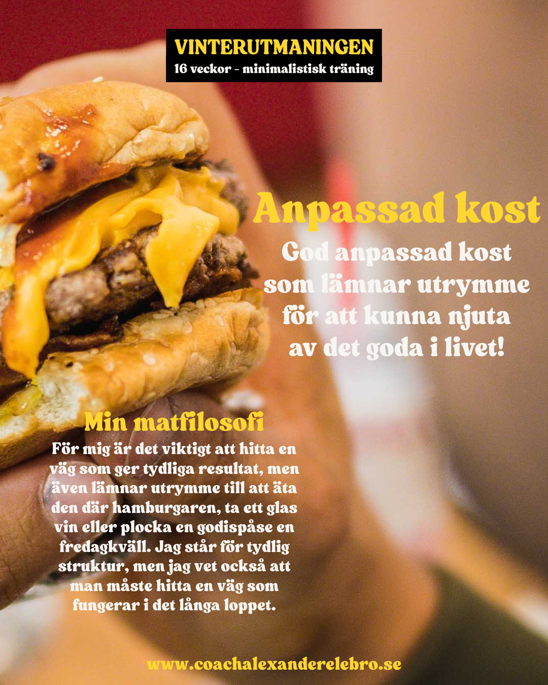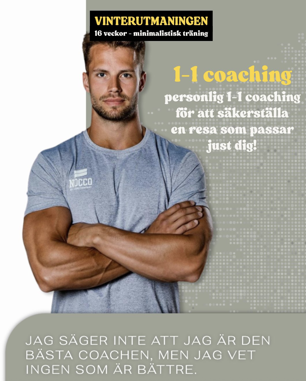 Du kan förvänta dig en helt personlig upplevelse. Jag vill skapa relationer med alla mina kunder så att jag kan hjälpa dig varje steg på vägen mot att nå dina mål. Det kommer inte bara att styras av siffror – när du går med i mitt team kommer vi att se till att förändra din livsstil på djupet. Dina mat- och träningsplaner kommer att vara hållbara, konsekventa och viktigast av allt njutbara. En personlig incheckningsprocess säkerställer att du rör dig mot dina mål och genom den direkta chatten kan jag stötta dig i varje steg på din resa.